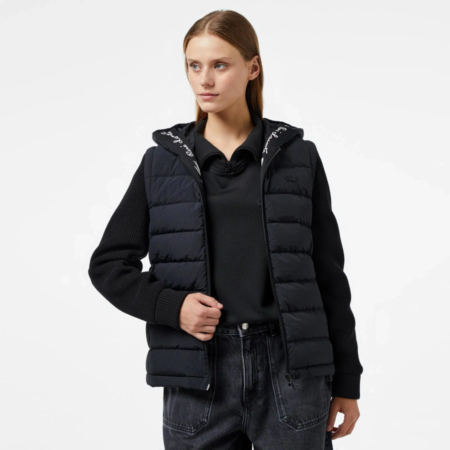 Женская укороченная куртка Lacoste на молнии с капюшоном